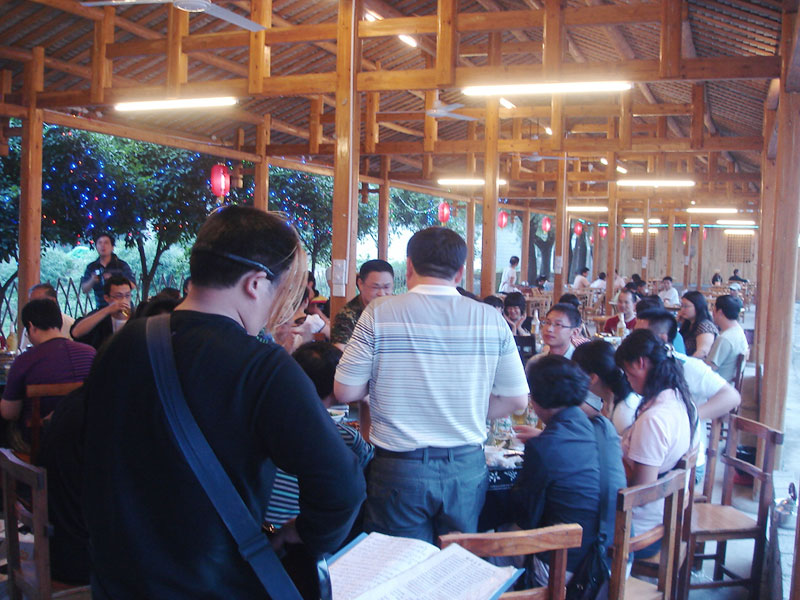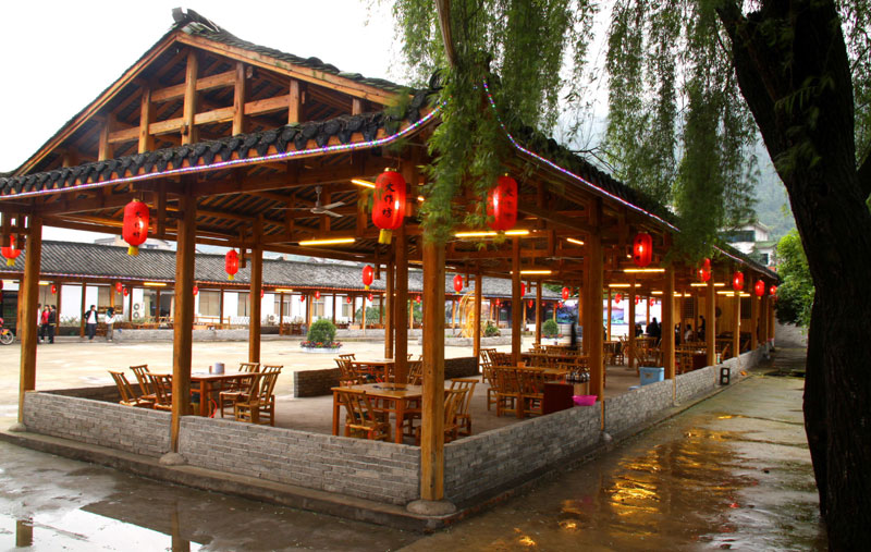 張家界武陵源大作坊美食城是一家集垂釣休閑,特色餐飲,夜市為一體的大型風味美食城!位于風景如畫的武陵源風景區(qū)區(qū)政府所在地,占地3000多平方米,可同時容納400多人就餐。這里也是景區(qū)內匯集土家美食,苗家美食的第一坊!美食城按純木四合院建造,內設酒作坊,豆腐作坊,臘味作坊,糍粑作坊,有垂釣區(qū),燒烤區(qū),菜品自助區(qū),客人廚藝展示區(qū),農產品展銷區(qū)等。酒作坊內聘請了民間煮酒大師現(xiàn)場煮酒,你有機會可以現(xiàn)場吃到熱乎乎的頭鍋酒,酒坊內有純米酒,包谷燒,高梁酒,有用野果泡制的各種果酒---燈籠酒,楊梅酒,彌猴桃酒等,更有特色的是把高梁酒放在正在生長的楠竹內,用竹內竹膜的香味把酒增香,十二天就把竹子砍下再放養(yǎng)三天就好了,客人要吃現(xiàn)場鋸竹筒酒吃!豆腐坊也是聘請民間老農現(xiàn)場用自制的石磨做豆腐,在這里你可以吃到真正有豆香味的原汁原味的石磨豆腐,和渣,菜豆腐,豆腐腦等豆制品!臘味作坊里有冬天用各種香料熏制的正宗湘西藏臘肉,臘豬頭肉,臘香腸,臘豬腳,各種臘制品臘野味等。糍粑坊每天在晚上人多用餐高峰時現(xiàn)場打滋粑,客人也可以自己參與打糍粑這個快樂的過程,想受過年時才有的熱鬧情景!在垂釣區(qū)里我們放養(yǎng)有很多野生魚類,有時間了你可以來這里休閑垂釣,得到的魚我們就會給你現(xiàn)場加工,有清沌的,紅燒的,青椒燜的,酸湯的,都很好吃哦。燒烤區(qū)里,我們高薪聘請了燒烤大師為你現(xiàn)場制做,你也可以自己動手,有烤羊排羊腿,各種串烤,烤全魚,烤全兔等,還有各種鐵板烤可以自己炒著吃!菜品自己選區(qū)里有各種山野菜,壇子菜,干菜,臘味等,有各種鮮活的魚類,河蛘,水魚,田螺,龍蝦等,有各種農家的土雞土鴨等,有各種鮮活的野味等你來享受美味呢!客人廚藝展示區(qū)里老板特設制地幾口大鍋, 很有特色的是, 你可以自己親自下廚, 酸甜苦辣任您自由調配 。 煮好了, 大家就圍著這“灶臺”合一的飯桌享受張家界的美食了。(張家界的三下鍋是很有特色的,是邊煮邊吃的, 只是這“三下鍋”是“大型三下鍋”而已。到張家界旅游,吃張家界的“三下鍋”是一種獨有的旅游體驗,到大作坊吃“大型三下鍋”,則更將會為你的旅程增添一份難得的回味。農產品展銷區(qū)里展示著當?shù)鼗蛳嫖鞯貐^(qū)最暢銷的農產品食品:正宗湘西鄉(xiāng)里臘肉,香腸,各種臘制品,洗車河霉豆腐,靈潔牌剁椒辣醬系列,菌油,正宗茶籽油,苗家酸湯,鄉(xiāng)里正宗葛粉,大壇湘西五糧液,竹簡敲敲酒,張家界茅巖霉茶,野生蜂蜜,高山葛粉,張家界第一山珍巖耳,葛根片等等!