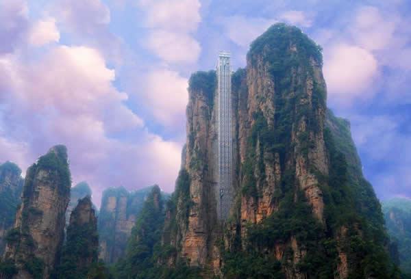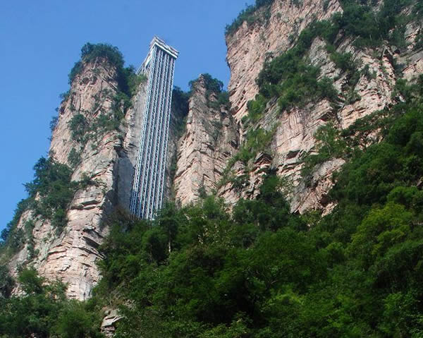 百龍?zhí)焯菀挥谑澜缱匀贿z產(chǎn)張家界武陵源風(fēng)景名勝區(qū),1999年9月動(dòng)工,2002年4月投入營運(yùn),電梯的主要設(shè)備由德國知名電梯公司研究生產(chǎn),耗資人民幣1.8億元,被譽(yù)為“世界上最高、運(yùn)行速度最快、載重量最大的電梯”,也因此被載入吉尼斯世界紀(jì)錄。