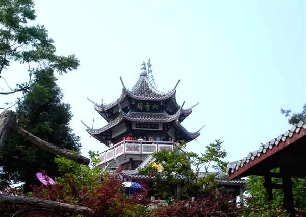 “六奇”是指山奇、水奇、云奇、石奇、動物奇、植物奇!敖搅魟氽E,我輩復登臨”;“欲窮千里目,更上一層樓”。站在閣頂,可以看到袁家界、楊家界、天子山、朝天觀、三姊妹峰……