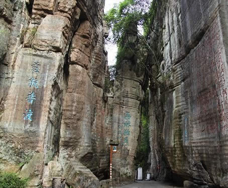 清嘉慶年間辟有洗心池。“不二門”如斧斫神劈,為石林天成,石林壁上鐫滿歷代文人的詩詠。這里古柏參天,藤蘿倒掛,環(huán)境幽美。有壁石如書的萬卷書者,有嵐霧束腰的七級青石培英塔。凝神盤坐的南海觀音是一塊天然造型的巨石,惟妙惟肖。觀音巖周圍,環(huán)繞著具有明清風(fēng)格的地藏庵、嵩山堂、水府閣等建筑物,布局靈巧緊湊,主題鮮明,因勢造景。景點間曲徑迂回,迷趣深奧,稱八陣圖。景區(qū)內(nèi)的河灘上有兩處溫泉,氤氳縈繞,水溫適宜(41℃),水質(zhì)良好,能治療多種疾病?h城人民經(jīng)“不二門”前往溫泉就浴者絡(luò)繹不絕,現(xiàn)又增建了石牌坊和民俗博物館。