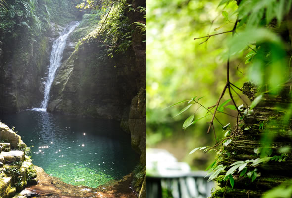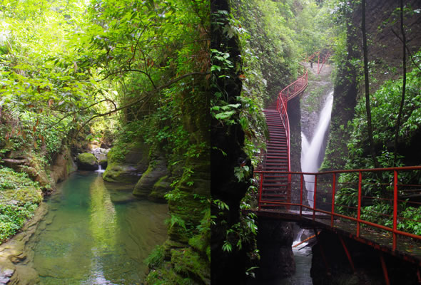 十八潭總名。稍作休憩,我們開(kāi)始奔赴東線的景點(diǎn)。東線主要是以十八潭為主,下游有4潭:合潭、梳妝潭、魚(yú)潭、黑潭;中游有9潭:換衣潭、美人潭、石蛙潭、姊妹潭(3個(gè))、情侶潭(2個(gè))、二龍搶珠,上游有5潭:鬼谷神功(2個(gè))、幽潭、落銀潭(彩虹潭)、路邊潭。十八個(gè)潭深淺不一,淺則1米以上,深則4米左右,形狀各異,有的月牙形,有的豬腰狀,形狀不規(guī)則,石壁上水沖成潭,真是鬼谷神功,此處水質(zhì)細(xì)膩,加之綠林映襯,水色碧綠見(jiàn)底,猶如十八顆翡翠石鑲嵌在山林之間,涓涓溪流晶瑩剔透,飛流直下的瀑布,氣勢(shì)磅礴,蔚為壯觀, 下游的4潭,合潭、梳妝潭、魚(yú)潭、黑潭。合潭是仙女峽谷與十八潭的交匯處;梳妝潭的水清如明鏡,又因?yàn)樘秲蓚?cè)石頭的封閉,使這面鏡子靜止不動(dòng),很方便梳妝,照鏡子。在梳妝潭周圍,有一種植物屬于紅豆杉系列,它的形狀好似梳子,可以用來(lái)梳頭。魚(yú)潭可不能望文生義。魚(yú)潭,是在冬天的時(shí)候,所有的魚(yú)都聚集在這里過(guò)冬,除此之外,這個(gè)潭水淺見(jiàn)底,冬天魚(yú)苗聚集,是捕魚(yú)的好季節(jié)。黑潭,水深不見(jiàn)底,所以叫黑潭,F(xiàn)在已經(jīng)看不見(jiàn)梳妝潭、魚(yú)潭、黑潭了,你猜為什么?建水庫(kù),建水上樂(lè)園,淹沒(méi)了。 斷魂石的傳說(shuō)。三國(guó)時(shí)期,高氏和蕭氏一對(duì)夫妻春節(jié)忙活,遇上了天門垮眼,受余震襲擊,打死了丈夫蕭氏。高氏思念丈夫,淚哭不斷,結(jié)果摔死潭中。人們經(jīng)常還能聽(tīng)到哭聲傳來(lái),不敢單獨(dú)行走,需成群結(jié)隊(duì)。后人為了鎮(zhèn)邪,雕刻一條蜈蚣驅(qū)趕哭魂,多年后,蜈蚣成精,天上打雷,巖石發(fā)光,遭雷所劈,成了斷魂石。 和尚姥,也就是丹灶峰,天門十六峰之一。相傳此峰為仙人化身,赤松子曾在此煉丹,許多詩(shī)人在此留下了美妙的詩(shī)篇,明代葉守禮《丹灶峰》: 懸崖峭壁隔塵寰,上有仙人學(xué)煉丹。 煉得丹成鶴已去,獨(dú)留丹灶在峰巒。 意思是說(shuō),在這險(xiǎn)峻秀麗的山峰上,赤松子潛心煉丹,不受塵世干擾,身心沉醉于秀美的山間,沉溺于丹藥的煉制之中。作者很是羨慕那種與世隔絕的超脫,那種執(zhí)著于自我理想的瀟灑,你羨慕不羨慕? 竹林叢生。我們要學(xué)習(xí)竹子的精神,中空、謙卑;我們要學(xué)習(xí)竹子的精神,抱團(tuán)生長(zhǎng);我們要學(xué)習(xí)竹子的精神,破土而出,節(jié)節(jié)高。 向家塔。打造農(nóng)耕養(yǎng)生游的地方。種田、種菜、種花,農(nóng)家餐館。 爛泥巴根。爛泥巴根和馬桑樹(shù)是同科,是這里獨(dú)特的一種樹(shù)。馬桑樹(shù)亦稱“千年紅”、“馬鞍子”,屬落葉灌木,馬桑樹(shù)多枝叢生,一簇一簇的,枝葉像傘蓋,因此“馬桑樹(shù)兒搭燈臺(tái)”。春風(fēng)一吹,滿山的馬桑樹(shù)、爛泥巴根就吐翠滴綠,顯示出強(qiáng)勁的生命力。打油詩(shī)一首: 青青枝條四方走, 肥肥大葉落上頭, 身在路邊無(wú)人問(wèn), 冬去春來(lái)樂(lè)悠悠。 秋天死亡,春天長(zhǎng)勢(shì)更加茂盛,它的新生是通過(guò)死亡實(shí)現(xiàn)的。山川如此,植物也是如此,這里的一草一木無(wú)不透露著道家那種齊生死、等貴賤的精神。 這叫“常道”亭,“道可道,非常道”,據(jù)說(shuō)是白狐與劉海相遇的地方。吊橋。 十八潭各具特色。 中游有9潭。第五潭叫換衣潭。巖石聳立,霧氣氤氳,巖壁上布滿水汽,猶如雨下。又因過(guò)道狹窄,行人需彎腰通過(guò),未免雨水打濕衣裳,在此就要脫下身上衣物,通過(guò)后在第六潭再穿上。因此第六潭又叫美人潭,很幽深神秘的。第七潭叫石蛙潭,水淺,又比較平穩(wěn)、安全,春天產(chǎn)籽。余音回響,猶如蛙鳴,給人“聽(tīng)取蛙聲一片”的錯(cuò)覺(jué)。 對(duì)面巖壁叫“臘肉鋪”,那條自上而下的溪流叫“酒長(zhǎng)流”,客人來(lái)了,咱土家人熱情,臘肉下炕,苞谷燒,喝兩口! 第八潭第九潭叫情侶潭,比較隱蔽,他倆靜悄悄地談著情話,我們快走,不要打攪他們。 第十潭、十一潭、十二潭叫姊妹潭。下面那個(gè),水淺淺的,溫溫的,是幺妹潭,中間那個(gè)是二哥潭,上面那個(gè)是大哥潭。 潭的旁邊有珍稀植物馬蘭花,馬蘭花又名蝴蝶花、蝴蝶蘭,為多年生宿根草本花卉,根莖短粗,肥壯。花大新奇,花色絢麗,鮮艷奪目;ㄓ兴{(lán)、白、黃、雪青等色;ㄆ5-6個(gè)月,每次花可開(kāi)花7-10天,頗耐觀賞。馬蘭花在我國(guó)栽培已有2000多年的歷史,目前歐、亞、非3洲均有分布,品種極多,難以計(jì)數(shù)。此花按植株高度不同可分3種類型:矮株型僅18-25厘米,中株型高25-70厘米,高株型可高達(dá)120厘米。馬蘭花喜陽(yáng)光,適栽于背風(fēng)向砂質(zhì)土壤中。 馬蘭開(kāi)花的童謠。他們?nèi)⒚眯r(shí)候情感深厚,常常一起跳皮筋。大家會(huì)跳嗎?會(huì)唱嗎? 小汽車,滴滴滴,馬蘭開(kāi)花二十一, 二五六二五七,二八二九三十一, 三五六三五七,三八三九四十一, 四五六四五七,四八四九五十一, 五五六五五七,五八五九六十一 ! 還有紅豆杉,像梳頭的篦子,叫“篦子三尖杉”。還有蘭心草,中草藥,空中飄來(lái)蘭花的香氣,山谷中峭壁的蘭花,如芳芳人品善良高雅。蘭花如人品有宜人的香氣,蘭花有撩人的幽香,任何花卉的香氣都不能與蘭花比。這幽香時(shí)隱時(shí)現(xiàn),時(shí)濃時(shí)淡,