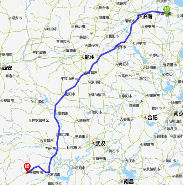 青州去張家界自駕車自助游線路圖全程高速):