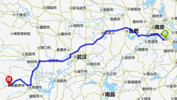 現(xiàn)在位置:張家界旅行社->交通指南->自駕車路線 -> 溧陽到張家界旅游自駕車線路,溧陽去張家界自己開車要多長時間,有多少公里