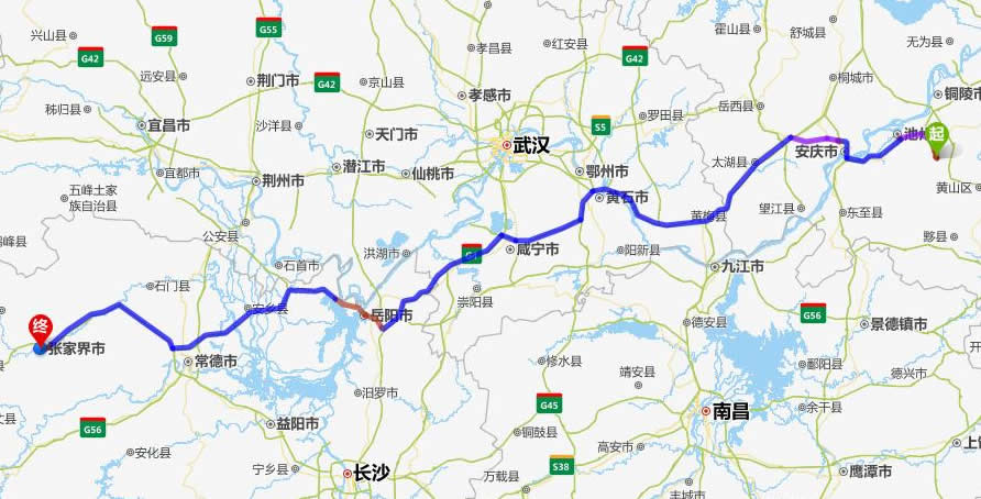 九華山去張家界自駕車(chē)自助游線路圖全程高速):