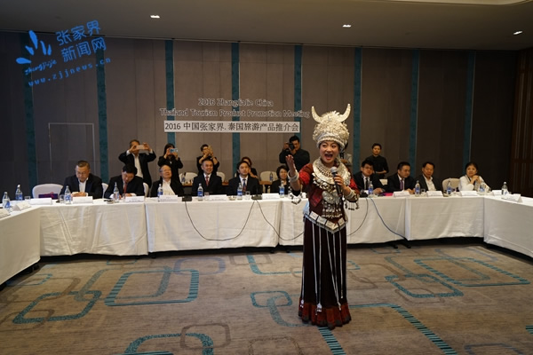 旅游主題推介、旅游宣傳片播放、座談交流、與曼谷旅行商簽訂意向性協(xié)議之后,魅力湘西國際文化廣場歌手阿朵還為現(xiàn)場嘉賓和旅行商演唱了精彩的非物質文化遺產(chǎn)——張家界桑植民歌。